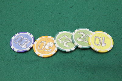 ポーカーチップと同じような質感で、かなりしっかりしたつくりです。 石炭チップは、ひっくり返すと10〜100までの数字か