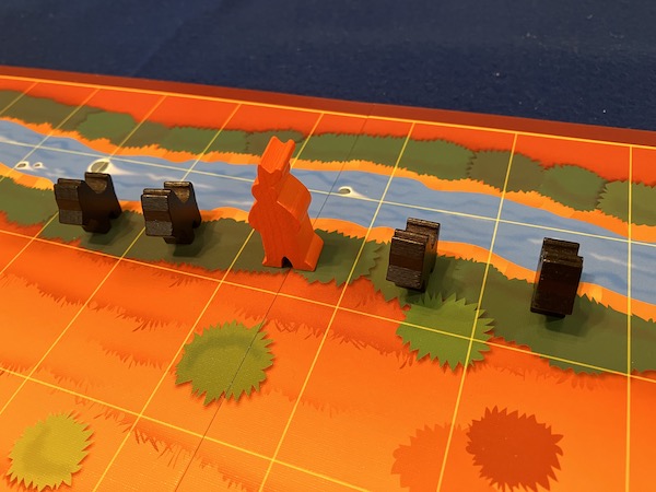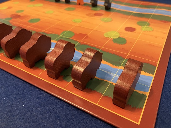 1頭、酋長側の川を越えて一番奥まで進めることができればバイソン側の勝ちです。