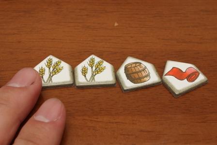 今回の追加タイル。なにやら街にマークが付いています。マークは3種類あって、「麦」「酒」「布」を表している