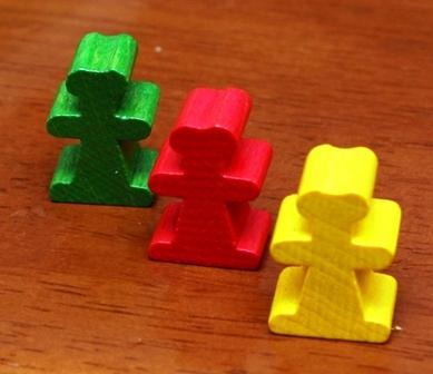 ゲーム終了時、3種類の特産品について最多数を持っていると10点ずつもらえます。 つまり、3種類全てで最多を獲得すれば30点! この特産品タイルは、その街を完成させたプレイヤーが必ずしももらえる わけではなく、あくまでその街を完成させる最後の1枚を置いたプレイヤーが獲得します。 つまり、特産品をゲットするために他のプレイヤーの街を敢えて完成させるという選択肢ができます。 次に建築士、こんなコマです。