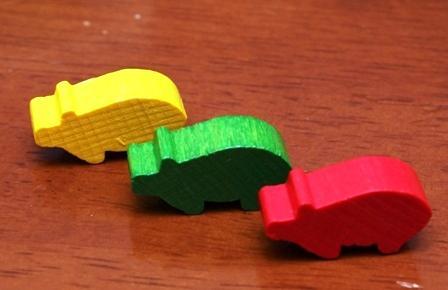 ※ただし、このエクストラタイルを建築士の居る街や道に置いても さらに追加のタイルを引くことはできない ※建築士は、その街や道が完成したときにミープルと一緒に手元に戻ってきます 最後にブタ、コイツは簡単で
