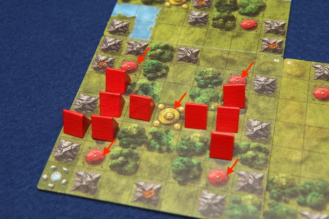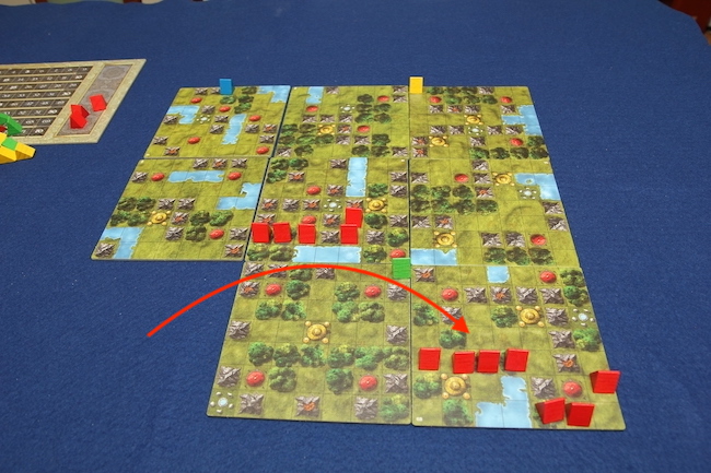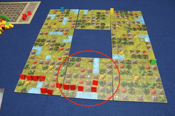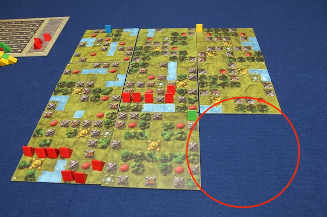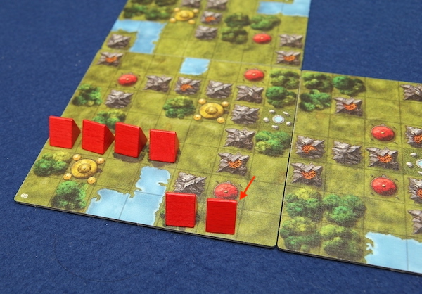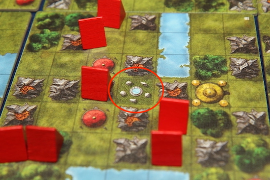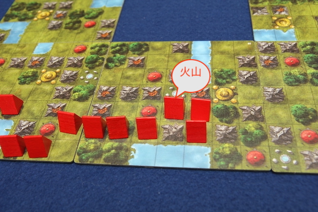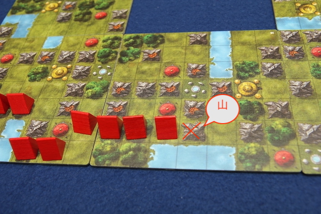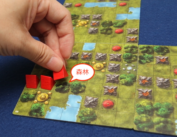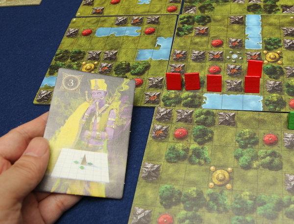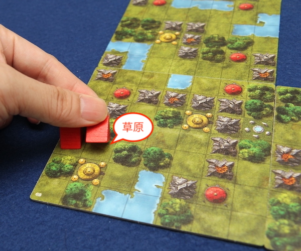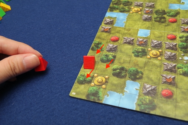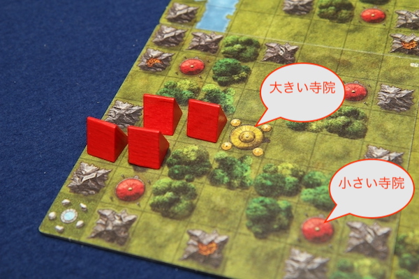 寺院に隣接するマスにコマを置くと点数がもらえます。