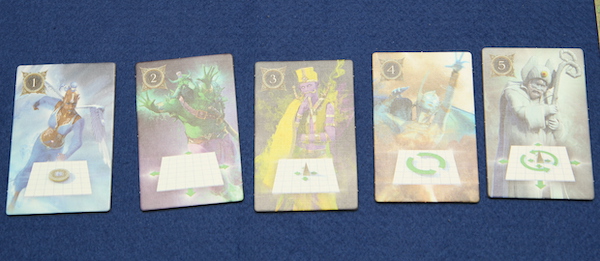 ボードが回転するとかスライドするとか、そういうルールがあるので先が全く読めないハチャメチャな展開になるゲーム。 かと思いきや、意外とそんなこともなくどちらかというと地味な印象すらあるじっくりゲーという感じ。 あやつり人形 や フェレータ と同じような職業選択システムが採用されているけど、本作ではこの部分は重要度は高くなくておまけ程度の要素かなと思った。 少なくとも3人プレイでは。次のスタートプレイヤーを取るメリットが薄くて、ほとんど取られることが無いかな・・というのも手番順がそんなに重要じゃなさそうなので。 積極的に他のプレイヤーの妨害をしにいく感じでもなく、そういう部分は チケットトゥライド のような感覚もちょっとある。 プレイ感はかなりアブストラクトに近く、あれをこうして、あれがこうなって・・みたいなことをパズルチックに考えるのが楽しいみたいな感じかなぁ。 で、時々、他のプレイヤーがボードを動かしたり回転させたりすることによって、計算が狂ったりする。 このゲームのインタラクションの大半はこの部分にあるかな。 とはいえ、最初に書いたように、思ったほどめちゃくちゃなことにはならない感じ。 もっと派手に動いても良かったんじゃないかと思えなくも無いくらい。 ただ、これ4人プレイだとどうなるのかちょっとまだ分からなくて、おそらくだけど4人プレイの方が面白そうな気がする。 3人だと、少なくとも1つ以上の寺院に隣接させることができたボードの枚数でもらえる点数が大きくて、まずはこれを狙わないと勝てない印象。 けど、4人プレイならもっと動ける範囲の制約がキツくなりそうで(盤上のコマの数が増えるので)、そうなると1枚のボードの寺院全てに隣接させるっていう得点源が3人プレイよりも有効に機能しそう。 そうなると、勝ちパターンに幅が出てきて深みが増しそうな気がするんですよね。 なかなか4人プレイできる機会がなくて、もしプレイできたら感想を追記したい。 2021/10/24 ■4人プレイ追記 やはり、4人プレイの方が良いですね。 各ラウンド最初のカードドラフトで、最後のプレイヤーは2枚しか選択肢が残らないのでスタートプレイヤーになれる、1のカードを取る意味が出てくる感じ。 ※3人プレイだと、ほぼ取られないと思う。 それと、1枚のボードの寺院全部制覇でもらえるボーナスの8点をメインに狙う戦略もかなり現実味があるかなぁ。 それでも、最低1箇所以上寺院に到達したボード枚数でmaxの8枚制覇で27点の方が若干有利かもしれないようにも思えたが 2枚のボードで8点ボーナスがもらえれば16点なので、他プレイヤーの27点達成阻止を考慮に入れると1箇所以上到達枚数で3、4枚(6点、10点)くらいあれば対抗できそうな気がする。 4人のうち、8点ボーナス狙いと27点狙いが何人居るかによっても変わってくると思うので序盤の見極めが大事になってくるのかな。 まあ、どっちにしてもボード上が3人プレイよりも混雑するのは確かなので、よりカツカツになるのは間違いない。 3人プレイがイマイチ、とまでは言わないけどこれはやっぱり4人ベストかな。 2021/11/15ツイート