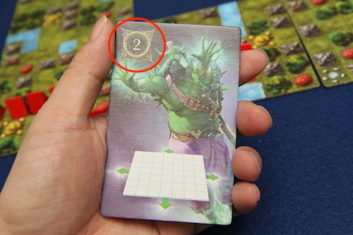 大きい寺院に隣接させた場合:3点 小さい寺院に隣接させた場合:2点 ※点数計算は全てゲーム終了時に行います。 1枚のボード上の寺院全てに隣接させると追加で8点もらえます。