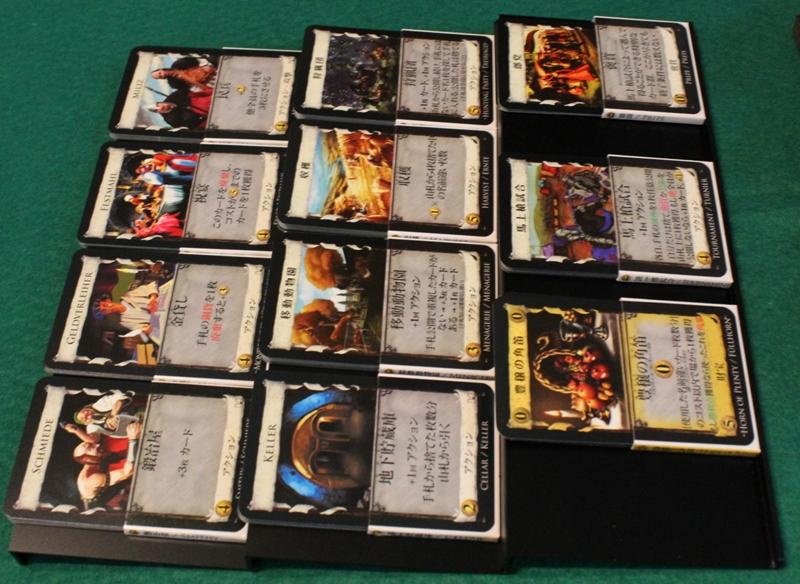 相棒と対戦 ルールブックに載っていた下記のカードセットを使ってみることに今回の拡張の目玉っぽいものが網羅されている感じだったので。 すごろくやさんから販売されている、ドミニオン・ステージを使用してみました。