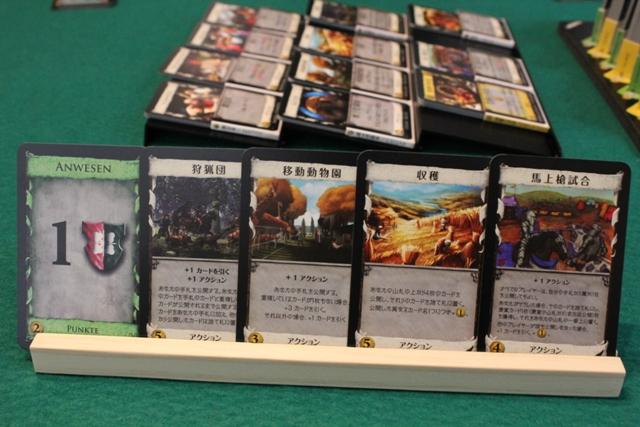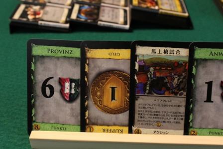 他のカードと違って、褒賞カードは5枚しかなく しかもその5枚の内容が全て違う。 内容もなかなかにユニークなのだが、獲得方法もちょっと他とは違っていて この「馬上槍試合」のアクションでのみゲットすることができる。