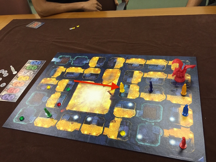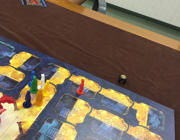他のプレイヤーと同じ冒険者コマを共有するようなこともあります。 実際にはいろいろ制限がありますが、手番では基本的に任意の冒険者コマを1つ選んで前に進めることができます。