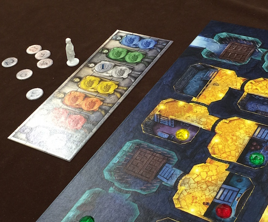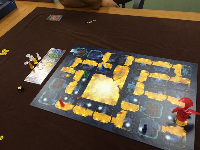 トラップのマスが増え、明るいところだけのマスとかがあります。 2ラウンドでゲーム終了。 1ラウンド目と2ラウンド目で自分の担当の冒険者に割り当てられた得点チップの合計と 獲得した宝石(1個1点)を足して、最も多くの勝利点を獲得したプレイヤーの勝ちです、 担当する冒険者は1ラウンド目と2ラウンド目で変えません。