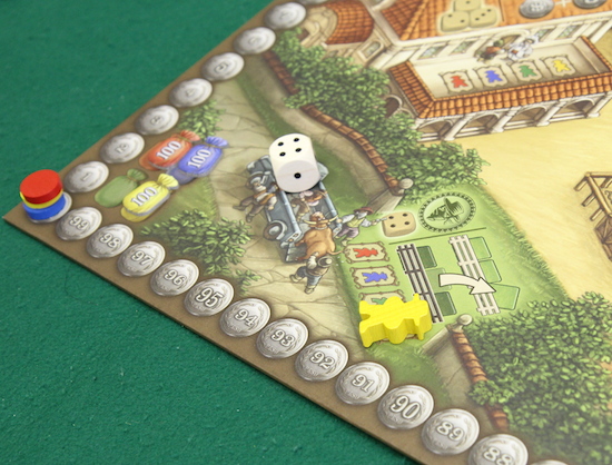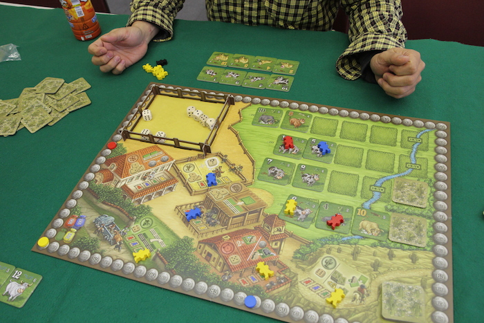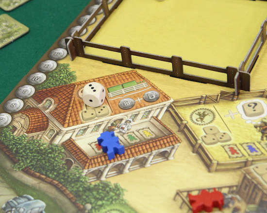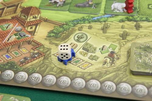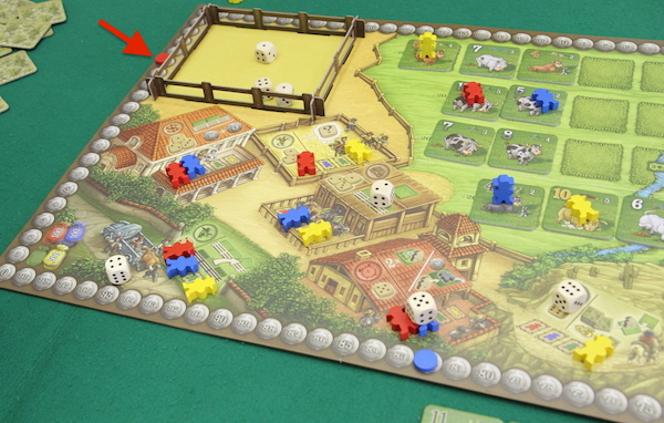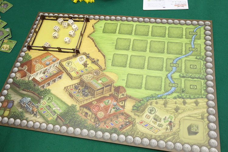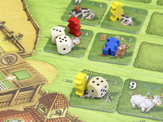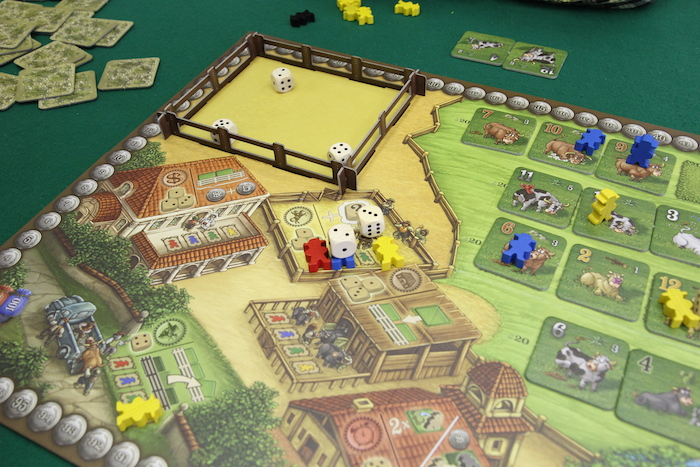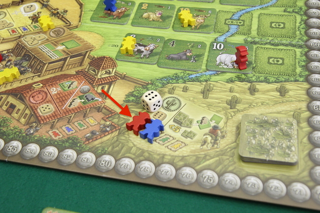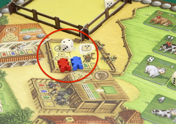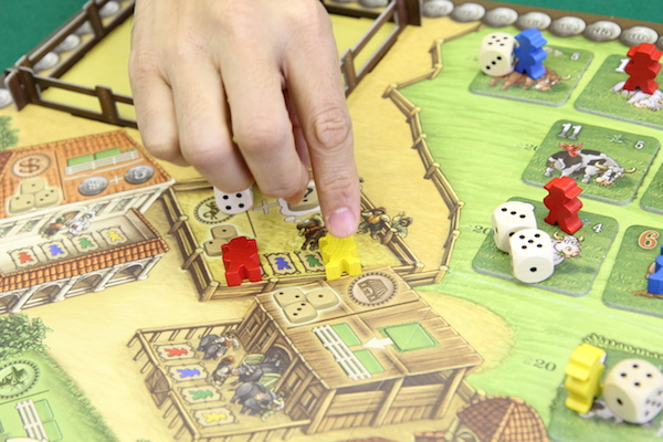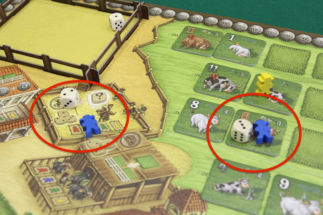 もちろん、2つのサイコロを別々で使えばワーカーを2つ置けるわけですが・・・ で、牛タイルの上以外にもワーカーを置けるアクションスペースがいくつかあります。