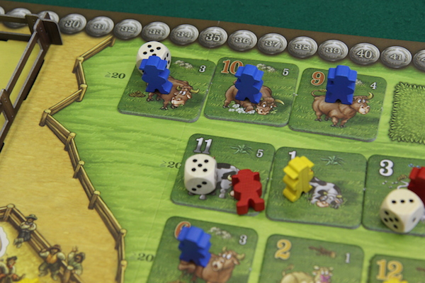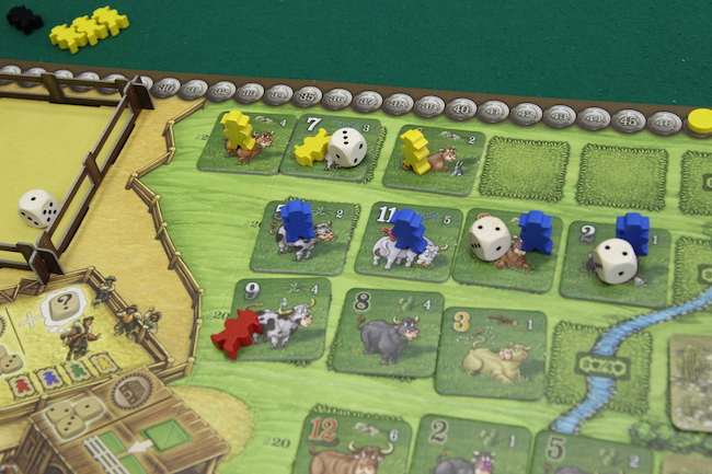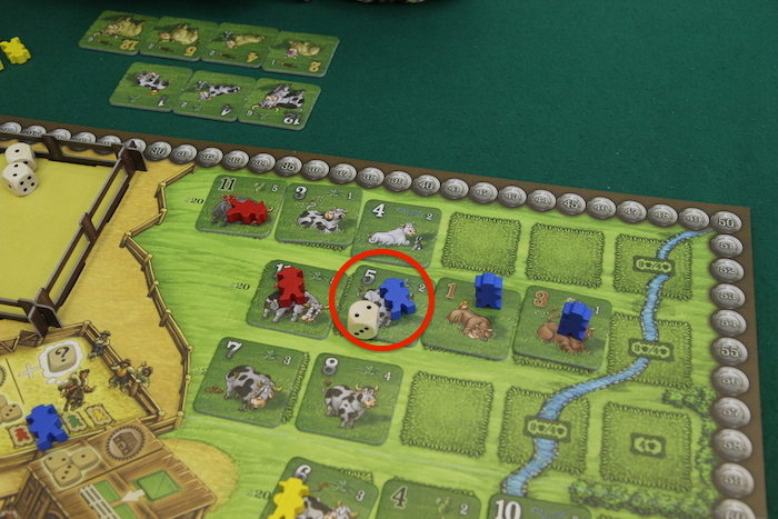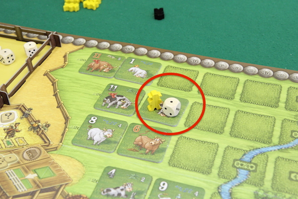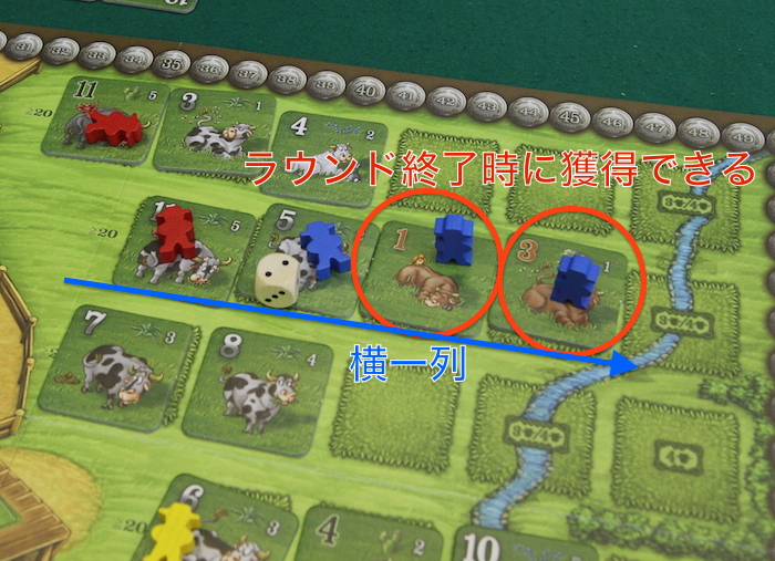 あの12の牛を盗みたいところだけど あの茶色2頭を獲得する為に、列の中で空いているタイルに適当に寝かせて置く