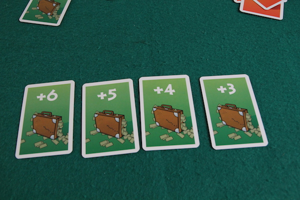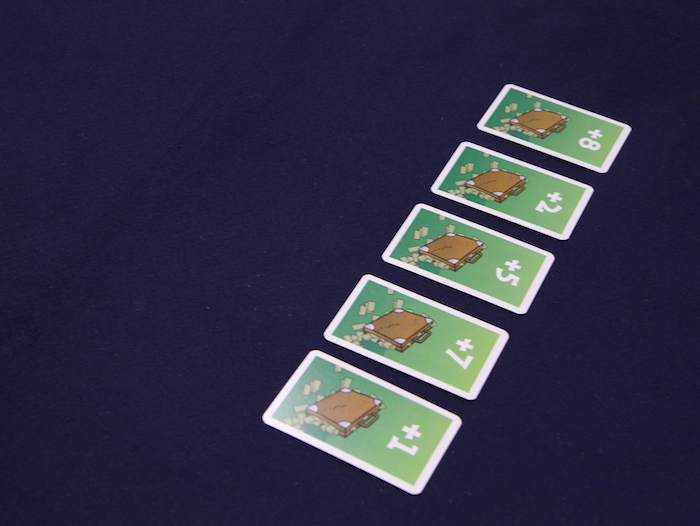 得点カードを良くシャッフルして「プレイ人数+1」枚、プラス面を上にしてテーブル中央に並べます。
