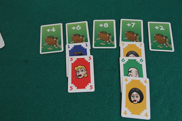 すべてのカードが置かれたら、カード列ごとに出した数字カードの合計が最も大きいプレイヤーが その得点カードを獲得できます。