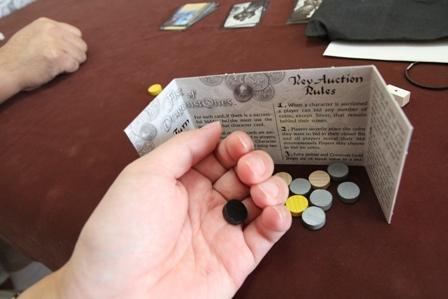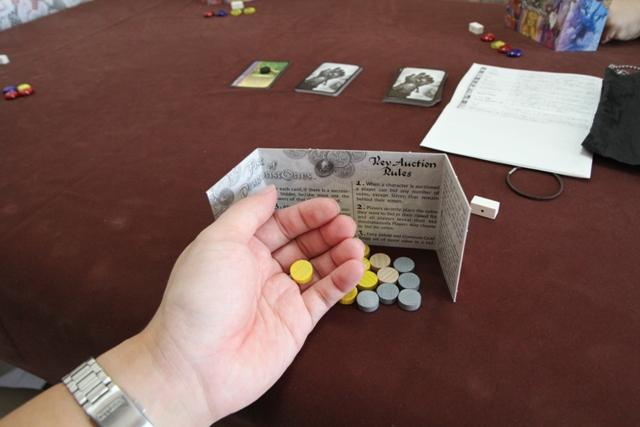 このカードがこのゲームのキーポイントの1つになっていて これを競り落とすと、呪いの黒魔術コインを1つ獲得できます。 コインは前述の、金貨、銀貨意外にもう2種類あって