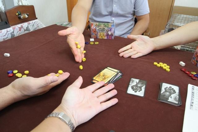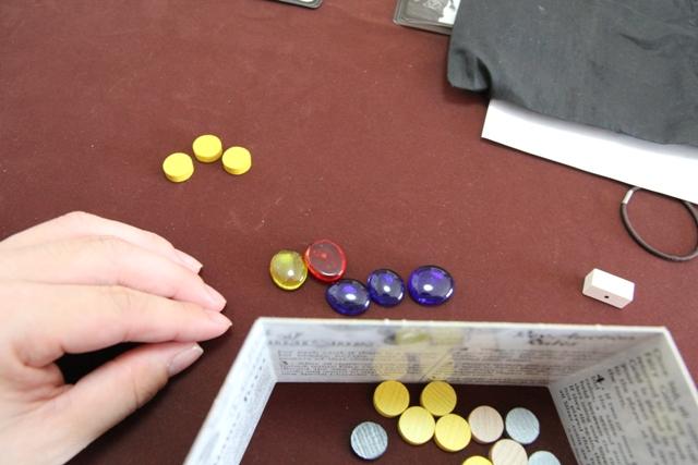 箱のイラストのイメージそのままですね 一番多く金貨を握った人が競りに勝ちます じゃ、握った金貨の数が同点だった場合どーすんの? となるわけだが そういうケースのときに、初めて銀貨が活躍します