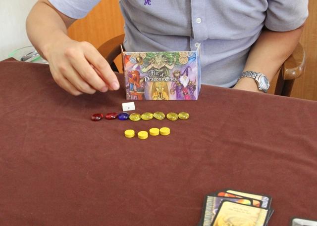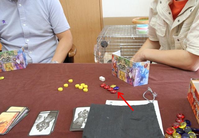 ストックから各色2個ずつ(計6個)宝石を取って付属の袋に入れます。 落札したプレイヤーは、袋から宝石を2つ引いて獲得します。 見習いソーサラー