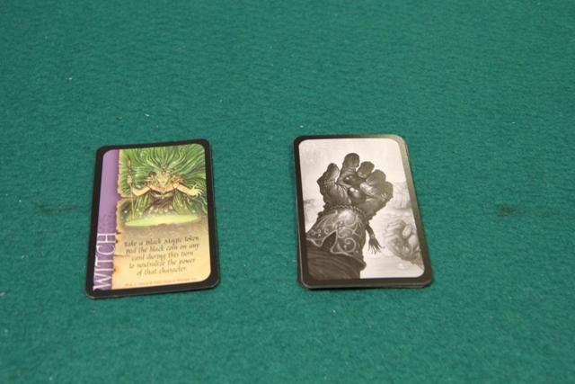 これは、競りのとき金貨の代わりに単独で握りこみます。 で、競りのとき誰かがこの黒魔術コインを握っていた場合 そのときの競り対象のカードの特典が無効になってしまう つまり、他のプレイヤーの金貨を浪費させることができるわけですね。 さて、続いてマジシャン