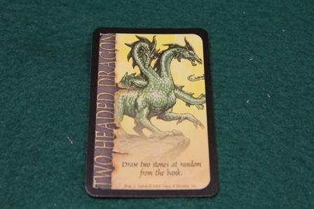 1枚めくっては競り、めくっては競りというのを繰り返していきます。 カードを競り落としたプレイヤーは、カードに書かれている特典を獲得します。 誰かが3得点獲得(=勝利)するまで、ラウンドを繰り返します。 ところでさっき保留にした、追加カードというのはけっこう種類があるのだが 一部をちょっとご紹介。 双頭ドラゴン