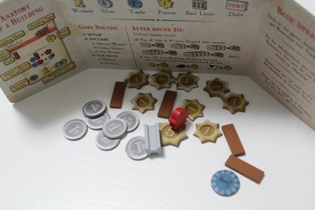 競りとか入ってるけど、そんなものオマケ要素と思えてしまうくらい 建築・リソース管理系全開なゲーム。 なんとなく、ケイラスあたりが好きな人なら楽しめそうな感じ。 資源をうまく回して効率よく建物を建てて人を雇ってお金と勝利点を稼ぐみたいな。 競りをオマケと感じたのは、おそらく「降りても何かもらえる」からだと思う。 もちろん、破格で競り落とされないようにくらいは競りに参加するんだけれど。 割と最初は借金地獄で始まるというプレイスタイルが多いみたいで、なんかそれって あのデザイナーのゲーム?という感じが・・・ でも、ほとんど借金ナシのプレイでも勝てたので、そういうスタイルが勝つための マストプレイというわけでも無さそうなのはすごく良いんじゃないかと。 勝ち筋がいろいろあるというのはプレイの幅を広げてくれて、深みを与えてくれる。 しかし、ケイラスほど重くはなくて、3人で1時間ちょっとくらいだったかな。 でも満足感は十分あると思う。 どう見ても手順が少々煩雑で、ゲーム全体の視認性が良くなくて ついでにこういう要素が多い管理系のゲームってあまり好みじゃないので良い評価は付けないけど これ、好きな人はとことん好きになれるタイプのゲームだと思う。 明らかなゲーマーズゲーム。初心者向きではありえない。 リソース管理やマネジメントが好みという方、オススメの一品です。 2012/05/15ツイート