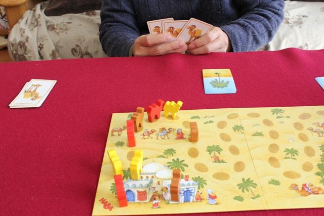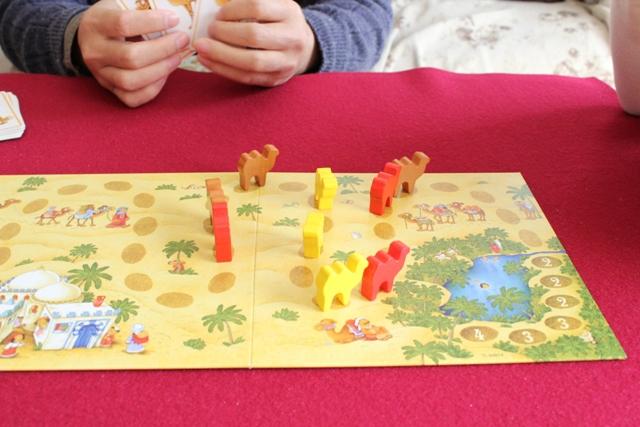 得点の合計が最も多いプレイヤーの勝ち。 ラクダの進め方は、カードをプレイして行います。 手札は3枚