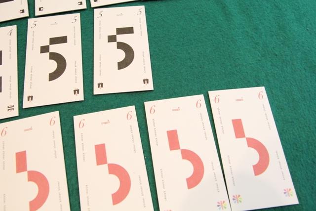 お手軽な2人専用カードゲームです。カードは16枚。1~5までの数字が書かれているカードが2枚ずつと6が6枚です。