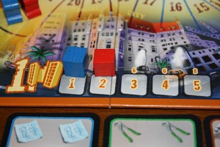 ボードの端には1~5までの数字が書かれていて 場所ごとに、悪党達が暗躍する。。