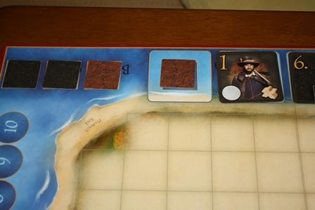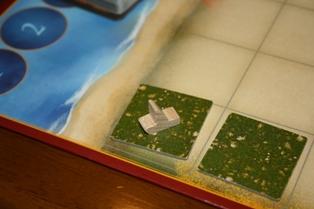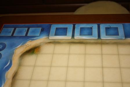 このとき船だけは、海に面しているタイルにしか置けない。 その他は、内陸の土地にも置ける。1つのタイルにコマは1つだけ。