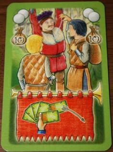 このカードは「要らない」と思ったら カードに書かれているアクションを使って 他のプレイヤーの手札と、このカードを交換することができる。 アクションというのは要するに、交換の方法だ オープンにされたカードを、別のカードで入札するものだったり 他のプレイヤーの手札から1枚好きなものを選べたり カードのアクションによって交換の手段がいろいろあるということ。 例えば、このカードのアクションは「泥棒」