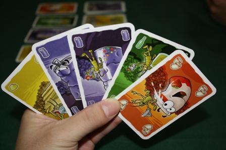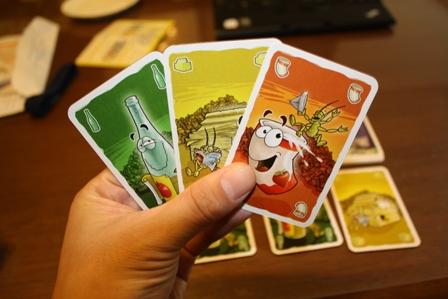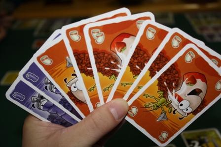 そろそろ、誰かがババを引かざるを得ない状況になる。 このときの俺の手札。赤のエコカードを狙いたい俺としては 赤のゴミが手札にまわってくるようにしたい。