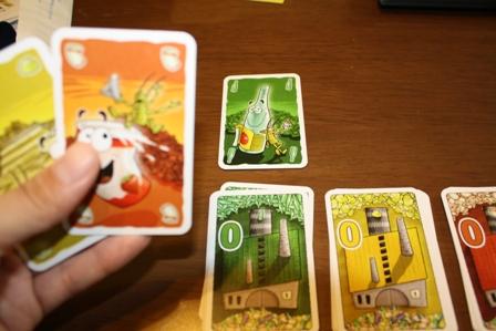 やべぇ、こっちにもかなり負けてる。 これで焦った俺。大ミスを犯すことになる。 ・勝つには赤のエコカードが大量に欲しい ・-2を引き取ってでも、その先のプラスポイントのエコカードが欲しい このことしか考えてなかった俺は、黄色工場の大量の赤ゴミをゲットする