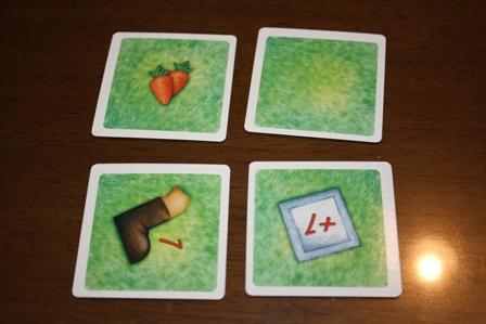 最初は1人2つずつ持ちます。 最後に畑カード。畑にはいろいろなイベントが付いています。