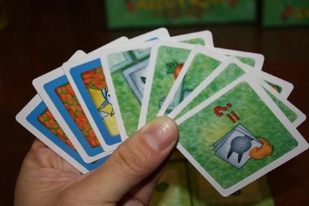 よーするに、畑の中に自分のウサギを隠しながら 他のプレイヤーのウサギを探すのである。 さて、ゲームの流れ まず、ウサギカード3枚と畑カードを山から5枚受け取ります。