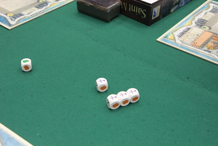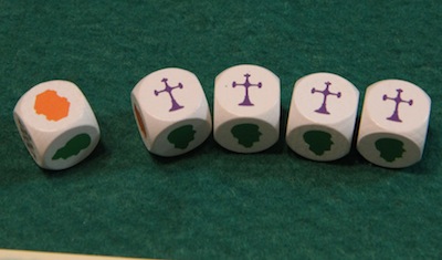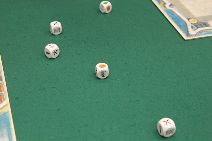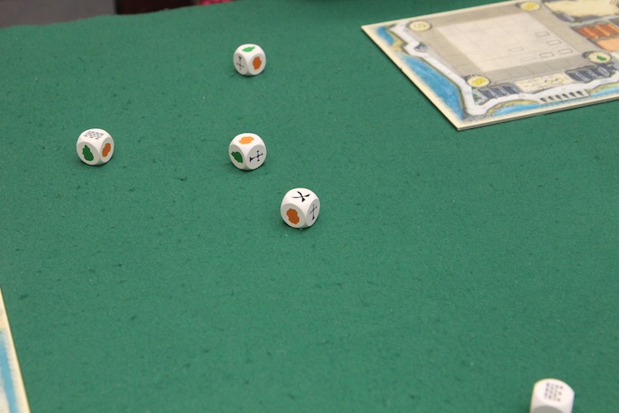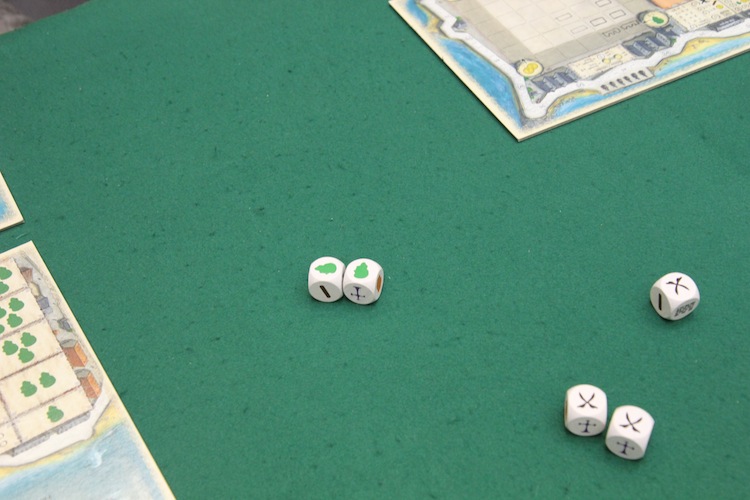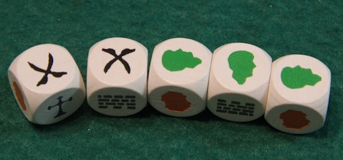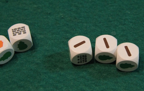 このとき、一部のサイコロだけ振り直せます たとえば、城壁をたくさん建てたかったら