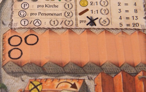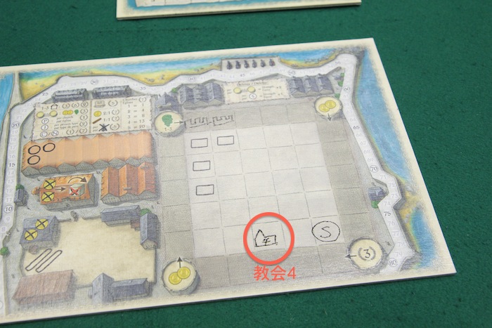 教会の目3つで、2とか1とか書いてもOK で、建てた教会によって勝利点がもらえます