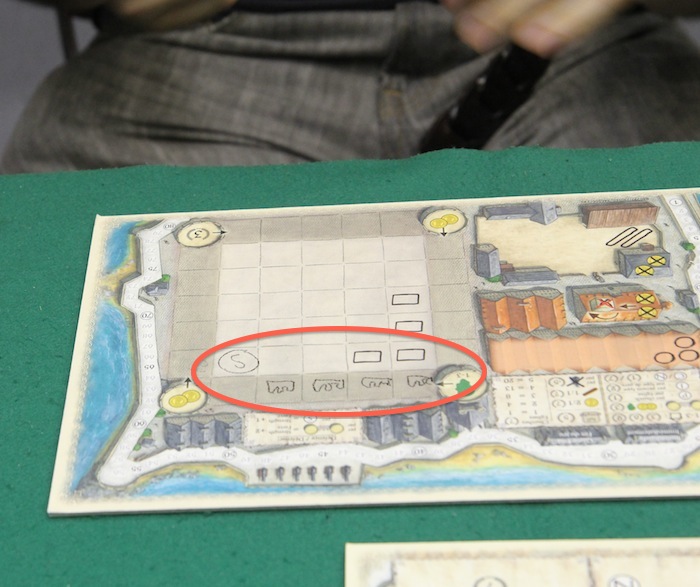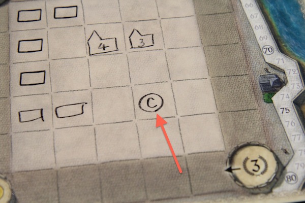 ペンで描きこみます ただし、木材を獲得するときにはコインを2つ払わなければなりません 個人ボードにコインを描くスペースがあるので