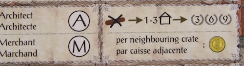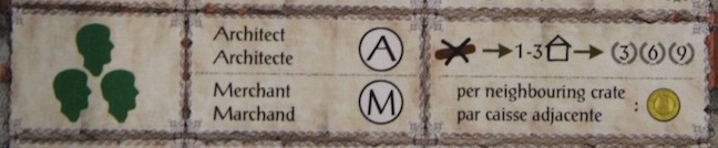 建築家(A) と 商人(M) 商人の場合は、隣接する商品と同じ数のコインを獲得できます