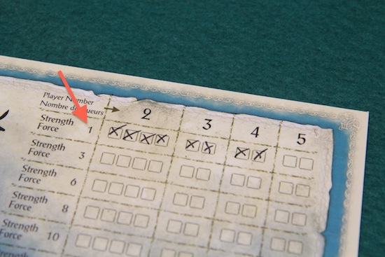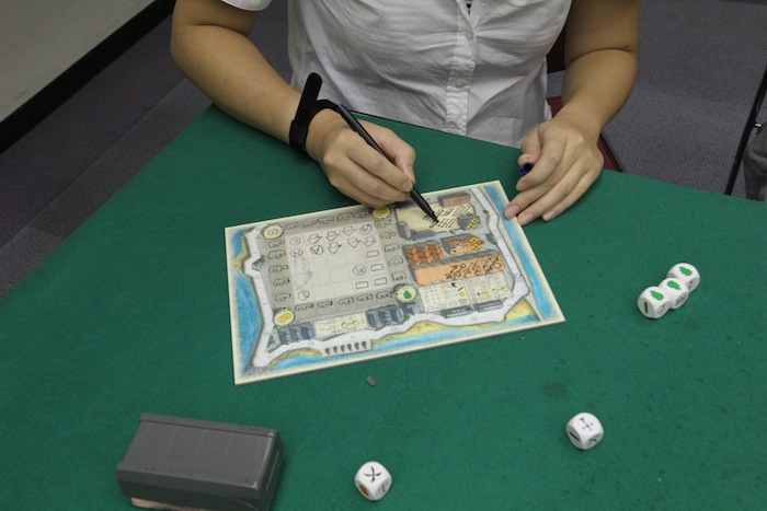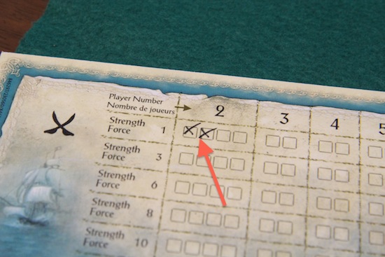 海賊の目は、選んだ目に関わらず効果を発動します 出てしまった海賊の目の数だけ、共有ボードにチェックを入れていきます