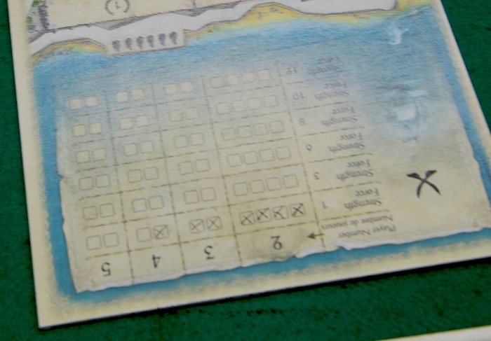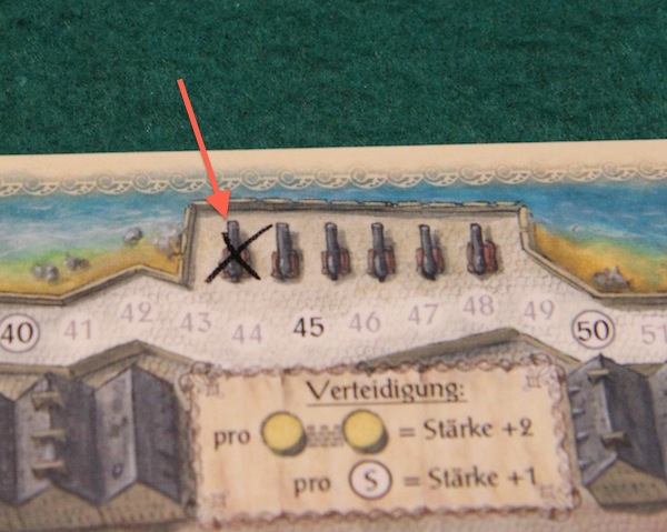 全プレイヤーに対して、海賊が襲撃してきます 海賊の襲撃に耐えることができないプレイヤーは個人ボードの大砲の絵に×をつけます