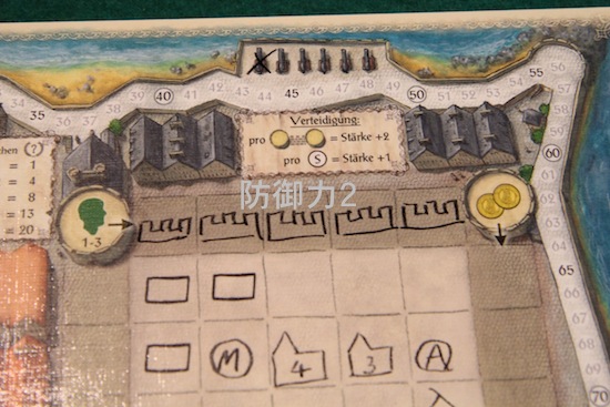 4辺あるので、全部埋められれば防御力8 さらに城壁が完成するごとにボーナスがもらえます