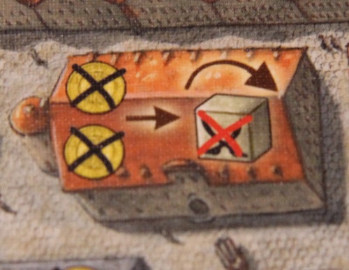 2コイン払うことで、ダイス1つを好きな目に変えることができます ただし、海賊の目だけは変えることができません