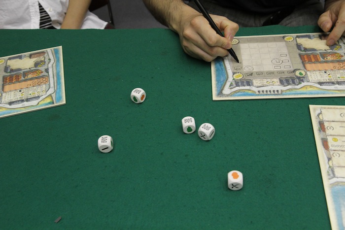 基本的にはダイスを振って、海賊の目以外の目をたくさん揃えることを目指します
