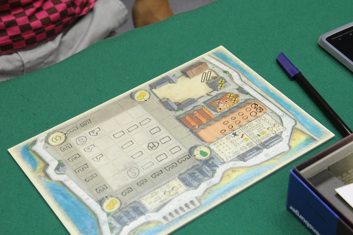 コスト削減でこういうコンポーネント構成になったって話なんだけど いや、分かるよ。これ全部コマとかで用意したら大変な価格設定になっちゃうことくらい。 でもさ、木製コマは無理だったとしてもせめて タイルくらいなら用意しても良かったんじゃないの? これ、ペンで書かせるってのはちょっとやり過ぎな気がする。 あまりスマートじゃないと思うし、プレイアビリティも良いとは言えないし。 ただ、もし木製コマとかにしたらメディナを凌駕するくらいの見栄えになったのかもしれないけど そこまで豪華にするほどの魅力がゲーム本体にあるかと言うと、ちょっと微妙かな。。 プレイ感としては、ヘックメックをベースにいろいろ弄って要素を足したような印象。 コロレットにいろいろ足してアクアレットが出来た感じに似てる気も少しする。 んー、そこそこ面白いんだけど、これだけ要素が増えた割には相互干渉的要素が希薄なのが気になる。 建物とかの建て方は、サイコロを採用するので良しとしても、うーん 個人ボードじゃなくて、メディナみたいに建物を建てるスペースは共有の方が面白くなるんじゃないかなと思ったり。 ちょっと閉鎖的すぎる。かといって、ダイスロールそのものにそれほど強いジレンマがあるわけでもないと思うし。 とは言うものの、もちろんまったく楽しく無いわけじゃないけどね。 2013/09/17ツイート