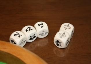 選択は2つに1つ、振るかやめるか。そういう意味だとキャントストップに似てるかな。 しかし、キャントストップは1歩ずつ上って行くのに対して、このゲームの場合 2倍の目があるので振りたくなる誘惑はかなり強い。 0点でも出目次第で一気に、、となることもままあるので脱落感みたいなものは無い。 もちろん逆の場合もあるんだけど。 ×2、×2、×2、×2 と来たりするとけっこう痺れる。 次の目は狼か、羊か・・・ 0点ならもちろん振るけどね。 ほとんどサイコロの運試しゲームなので、あまり高い評価は付けられないかな。 考えることはほとんどないし。その場のノリと時の運で遊ぶ感じだ。 ほぼ完全にソロプレイだし。 でも手軽さはいろんな意味でピカイチなのでそのへんはGOOD。 まぁまぁかな。ツイート