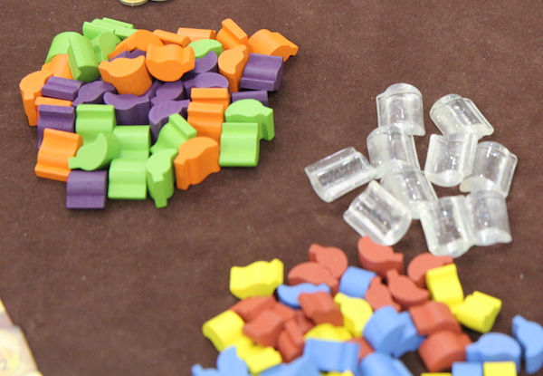セットコレクションとリソースマネジメントのゲームなんだけれど、、コンポーネントの種類(特にカード)が多めで管理やセットアップがちょっと大変かな? 得点カードの内容とか情報量も多めなんだけど、ほとんどがオープン情報なので内容を把握して覚えてとかいうのはあまり必要ない。 骨格となっているルールもシンプルに出来てて把握しやすく、総じて遊びやすく出来てると思う。 ただ、長考しがちな感じかな?かなりテンポが悪い。 特に収穫フェイズは、他のプレイヤーのコマが居る場所は通り抜けることすらできないため、前手番プレイヤーの行動による影響度合いが大きすぎて 自分の番が来てからじっくり考え始めなければならないシーンが多かったような気がする。 慣れないうちは、交配表とボードを交互ににらめっこ。で、収穫物をどう交換するかとか、わらしべ長者的なことを考えるわけだけれど たしかに楽しいんだけど、ちょっと地味ーですね^^; もちろん地味だから即悪いってことにはならないんだけども。 メカニクス的なところだけ取り出して見てみると、興味をそそられるモノはあまり見当たらないんだけど 実際遊んでみるとけっこう面白いという、そういうところはマングロービアに似た感じかなと思う。 ただ、長考になりがちなのがねぇ。ゲームを必要以上に重たくしてしまってるような・・ 2015/05/17ツイート