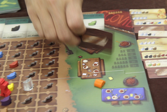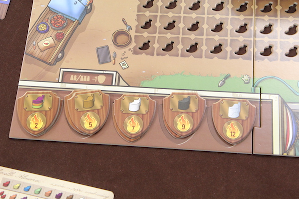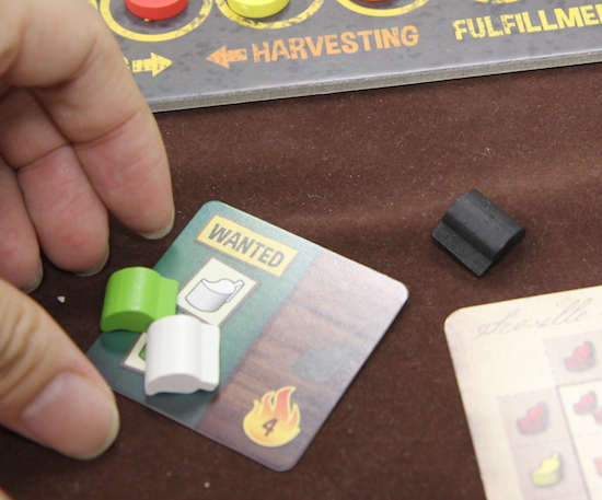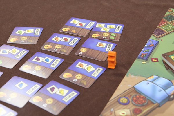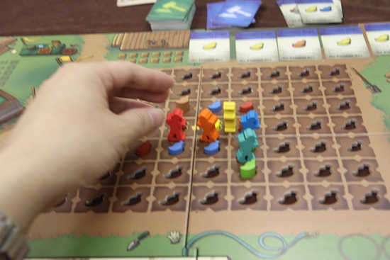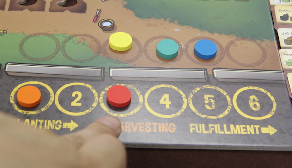 収穫フェーズだけは6から1へ、それ以外のフェーズでは1から6の順番で手番が回ってきます。 なので、バランスを取って3あたりのマスを選んだりすることもあります。