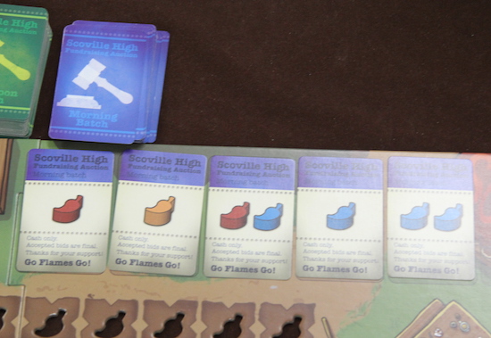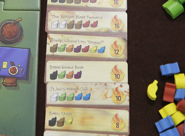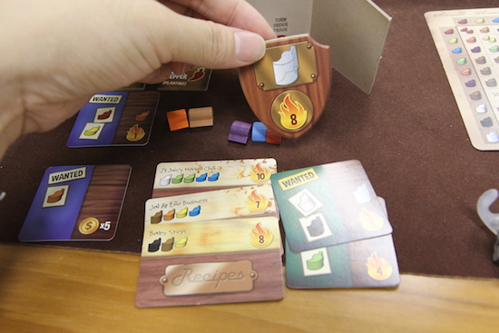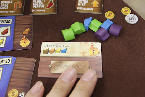得られるものは、茶色のトウガラシ1つ、3金、そして1勝利点です。 このゲームでは炎のマークに書かれた数字が勝利点を表します。 もう1種類、トウガラシを払うともらえる勝利点カードがあります。