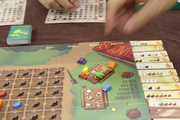 価値の高いトウガラシを植えるほど高得点。でも、タイルの枚数には限りがあるので早い者勝ち。 1度畑に植えたトウガラシはもう誰のものでも無くなってしまいます。 →他人が植えたトウガラシを利用して収穫できる →一度植えられたトウガラシは取り除かれることがありません ラウンドの最初に、トウガラシコマの支給があります。