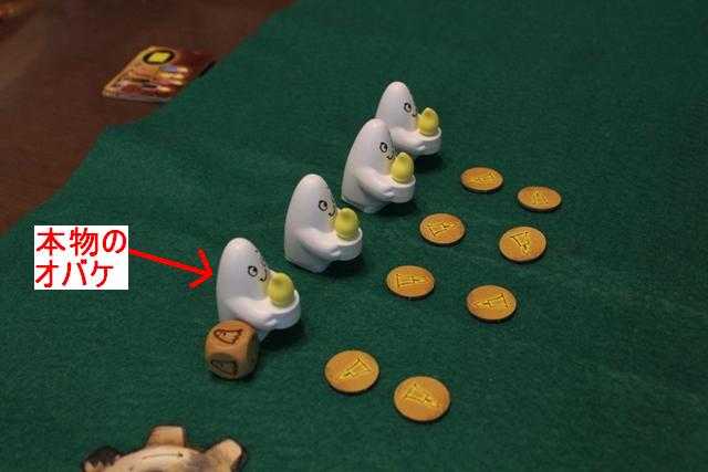 相手のチップのマスにオバケを置いておけば取れないので オバケをどけては、また邪魔されてという泥仕合 俺の手番、出た目は