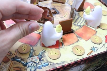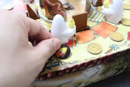本物のオバケだけは、ボードの突起にひっかかるようになってます。 もちろん、ゲーム中はオバケをひっくり返して見てはいけません。 上級ルールとして、得点をつけるルールもあります。