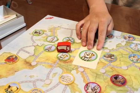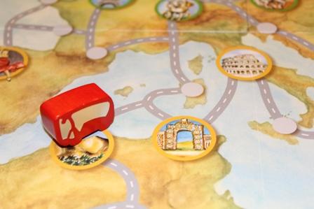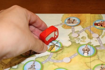 ボード全景、ヨーロッパとアフリカの一部が舞台です。プレイヤーは全員で1台のバスに乗り、各国を旅行します。
