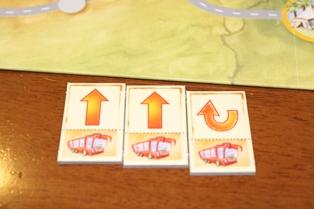今度は2マス進めます。 つまり場に出ているチップの枚数と同じマス数だけ進めます。 分かれ道では、